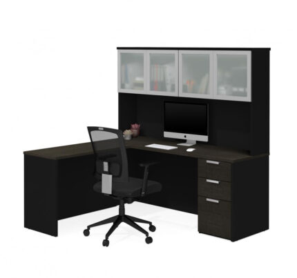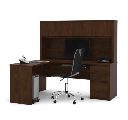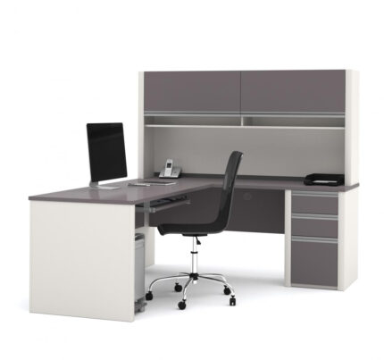 The Bestar Connexion 72W L-Shaped Desk with Hutch and Pedestal is the perfect workstation for any professional environment. This classic