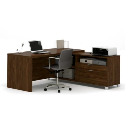The Bestar Connexion 72W L-Shaped Desk with Lateral File Cabinet provides a clean and functional workstation. Its classic look brings