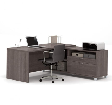 With clean lines and a modern design, this contemporary L-shaped desk is the perfect addition to any office environment. The