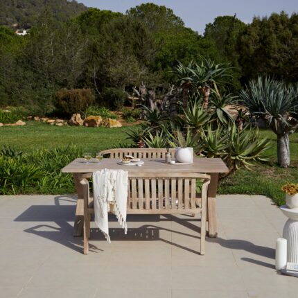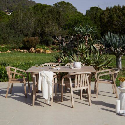 Buyer’s Notes Elevate your garden with the Charlotte and Shiro dining table set this summer. Crafted from brushed light acacia