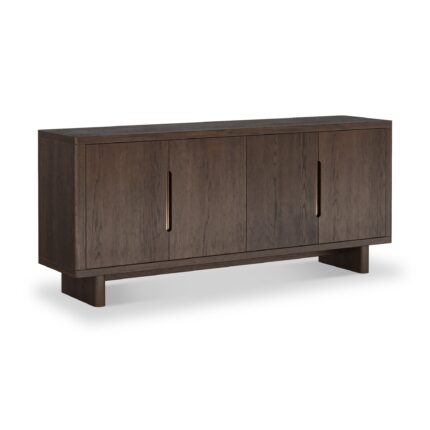 Modern dark oak-stained large sideboard Inspired by 1940s French Streamline Moderne style Bold geometric forms and luxurious materials High-quality wood