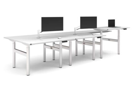 Description Hello, call me the Flexi Premium Height Adjustable 4 Person H-Bench Workstation – a great ergonomic solution for the