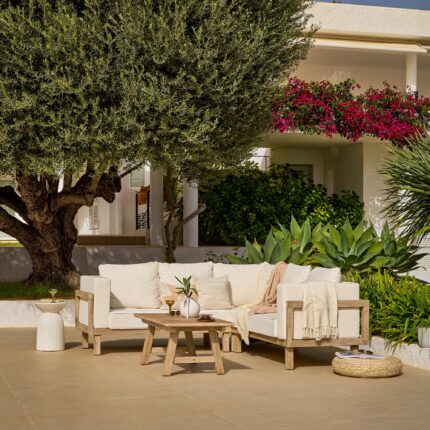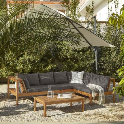 Buyer’s Notes Transform your garden this summer with the Dakota modular corner sofa set made from solid acacia wood featuring