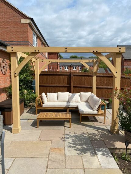 Dakota Wooden Garden Corner Sofa Set – Sand Cushions