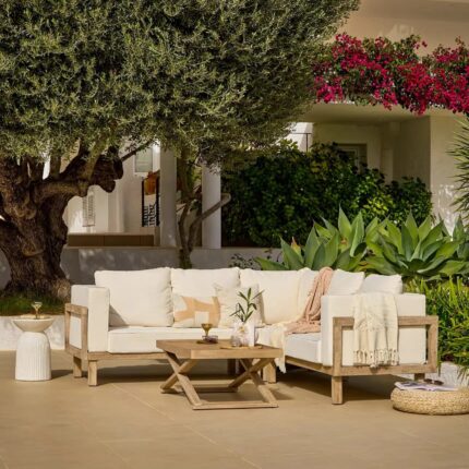Buyer’s Notes The Dakota garden sofa set is made from solid acacia wood with a slatted frame and chic natural