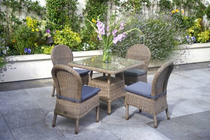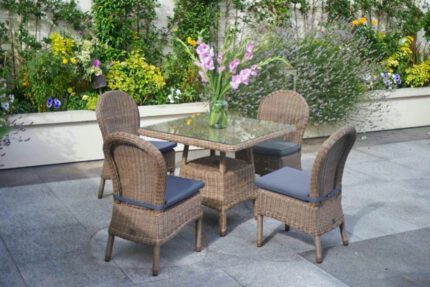 90cm Kensington Square Dining Table with 4 Dining Armchairs