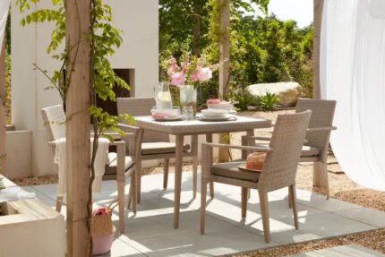 25 Year+ LifespanWaterproof CushionsFree Fast Track 1-Man Delivery This Hampstead Stone Dining Set perfectly blends luxury, versatility and durability. Part