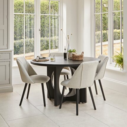 Jade 4 Seater Black Dining Table Set – Freya Sand Dining Chairs with Black Legs