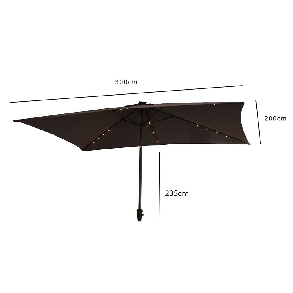 - Parasol design features – Easy crank opening & tilt mechanism & 24 LED lights.
