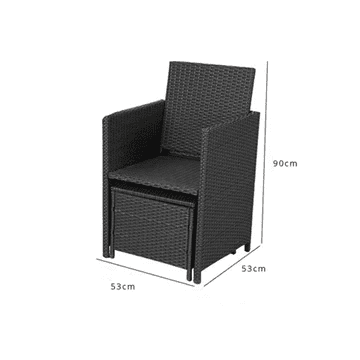- Set includes – 1 x polywood topped rectangular garden dining table with parasol hole & 6 x rattan garden dining chairs with 4 x rattan garden footstools. Complete with grey LED premium parasol, parasol rain cover and parasol base.