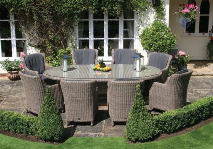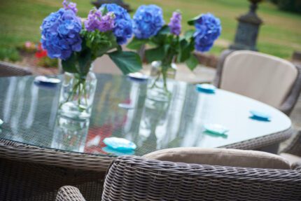 Seating up to 8 people, this stunning dining table will suit any style of garden or outdoor space. The table has been designed to withstand the elements all year round, expertly handwoven using versatile weatherproof rattan in Mushroom Brown. While the tables sturdy underframe ensures maximum stability on uneven decking or patio surfaces, the safety glass tabletop is easy to clean after any rainfall or accidental spillages and features a convenient Parasol hole.
