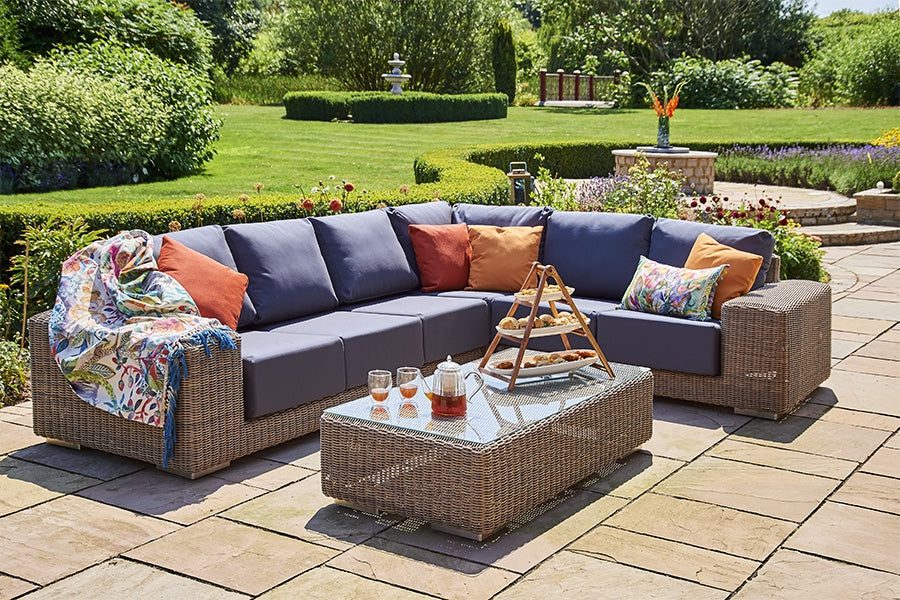Give your garden a touch of timeless luxury with our premium rattan 5 Piece Kensington Rattan Modular Sofa Set L.