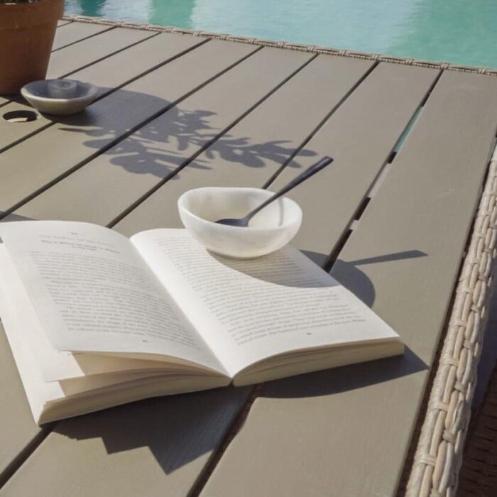 Made from a premium natural woven weave of weather-resistant PE rattan and an internal powder- coated steel frame, this polywood topped dining table set is carefully curated with high quality materials for a long lasting and enjoyable open-air dining experience. In addition, the parasol, crafted from 160g of durable cream fabric, adds a long-lasting shade solution to your outdoor space.