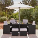 8 Seater Rattan Cube Outdoor Dining Set with Cream Parasol – Black Weave