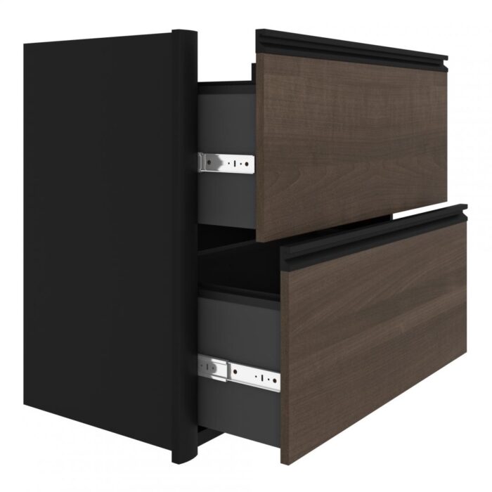 The Bestar Connexion 72W L-Shaped Desk with Lateral File Cabinet provides a clean and functional workstation. Its classic look brings any space together. This L-Shaped Desk is spacious but keeps everything withing easy reach. The computer desk comes with a built-in file cabinet and a keyboard tray. The spacious file drawers open on smooth full-extension ball-bearing slides and allow their content to be easy to reach. Thanks to the keyboard tray, you can work in a comfortable position all day. The convenient CPU stand offers a special place for your computer tower. Work with confidence on this computer desk‘s durable surface. This office workstation is tested to meet ANSI/BIFMA quality standards for safety and performance. This L-Shaped Desk is backed by the Bestar 10 Year Manufacturer‘s Warranty. North American made with local and imported parts.