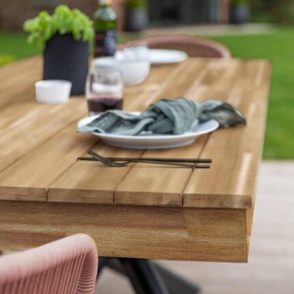 Tags: colour:black, colour:green, colour:natural, default-room:Garden, material:Acacia, Material:Metal, material:rope, material:solid wood, meta-courier:BJS3, meta-pre-order:24-03-2025, product_type:dining table sets, product_type:garden dining sets, product_type:garden furniture sets, product_type:wooden garden furniture, range:Amelia, Range:Hali, seasonal, seats:6, status:Current, YGroup_amelia-hali-outdoors
