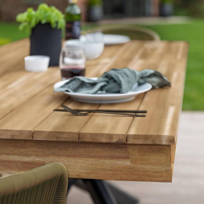 Amelia 6 Seater Natural Wood Black Legs Garden Dining Set – Hali Green Chairs