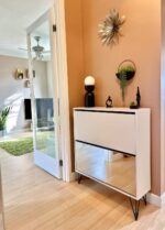 In a crisp white finish this shoe cabinet helps to bring a light and airy feel to your hallway, with the help of the mirrored door. Easily matching with any décor, the Anderson white shoe cabinet gives a clean touch to your home.