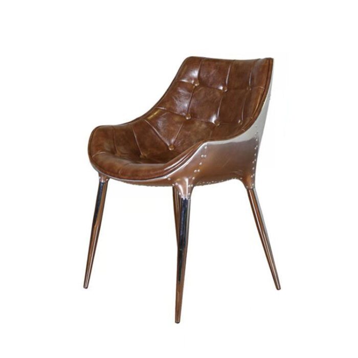 Aviation-Inspired Design: The Aviator Dining Chair features design elements reminiscent of classic aircraft, such as sleek lines, rivet details, and metallic accents, bringing a touch of vintage charm to your dining space.