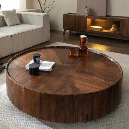 Round Walnut Wood Coffee Table – Minimalist Modern Design