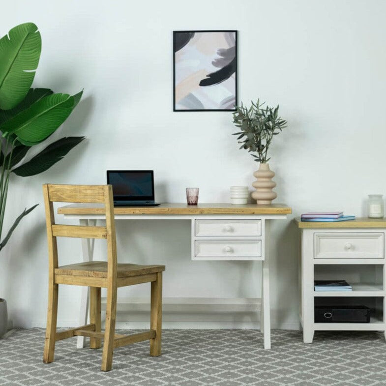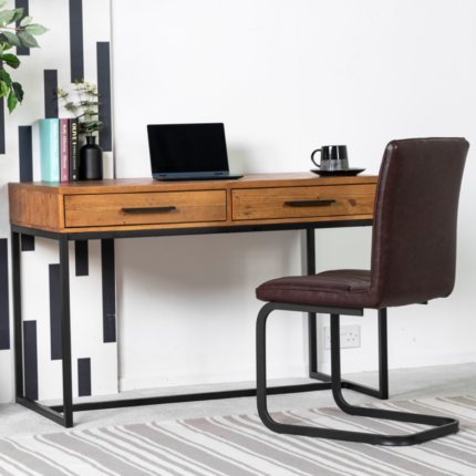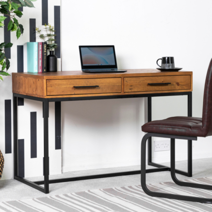 The Dove 2 Drawer Cross Leg Desk blends rustic charm with contemporary design, ideal for those who appreciate both sustainability and style in their workspace.