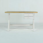 Its distinctive cross leg design not only provides stability but also adds a modern twist, making it a standout piece in any office setting. The desk’s top features a subtle wash natural finish that enhances the rich textures and colours of the reclaimed wood, creating a serene and inviting workspace conducive to productivity and creativity.