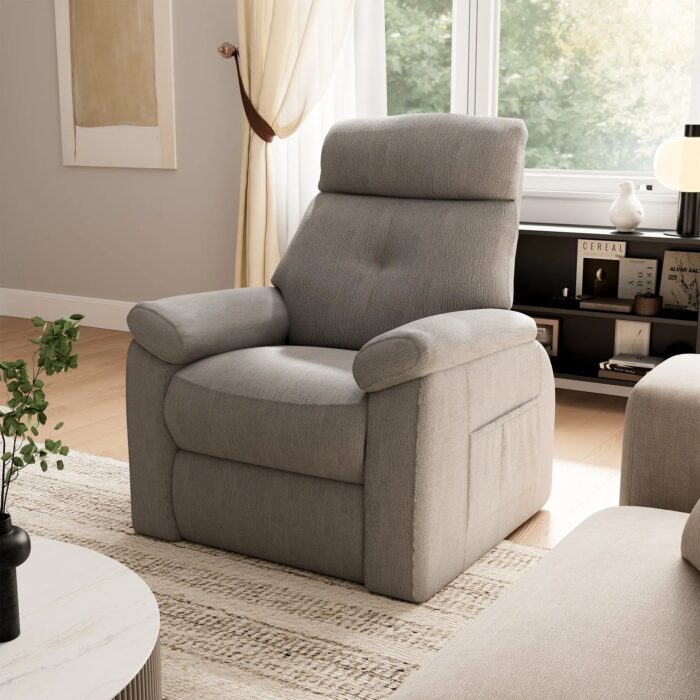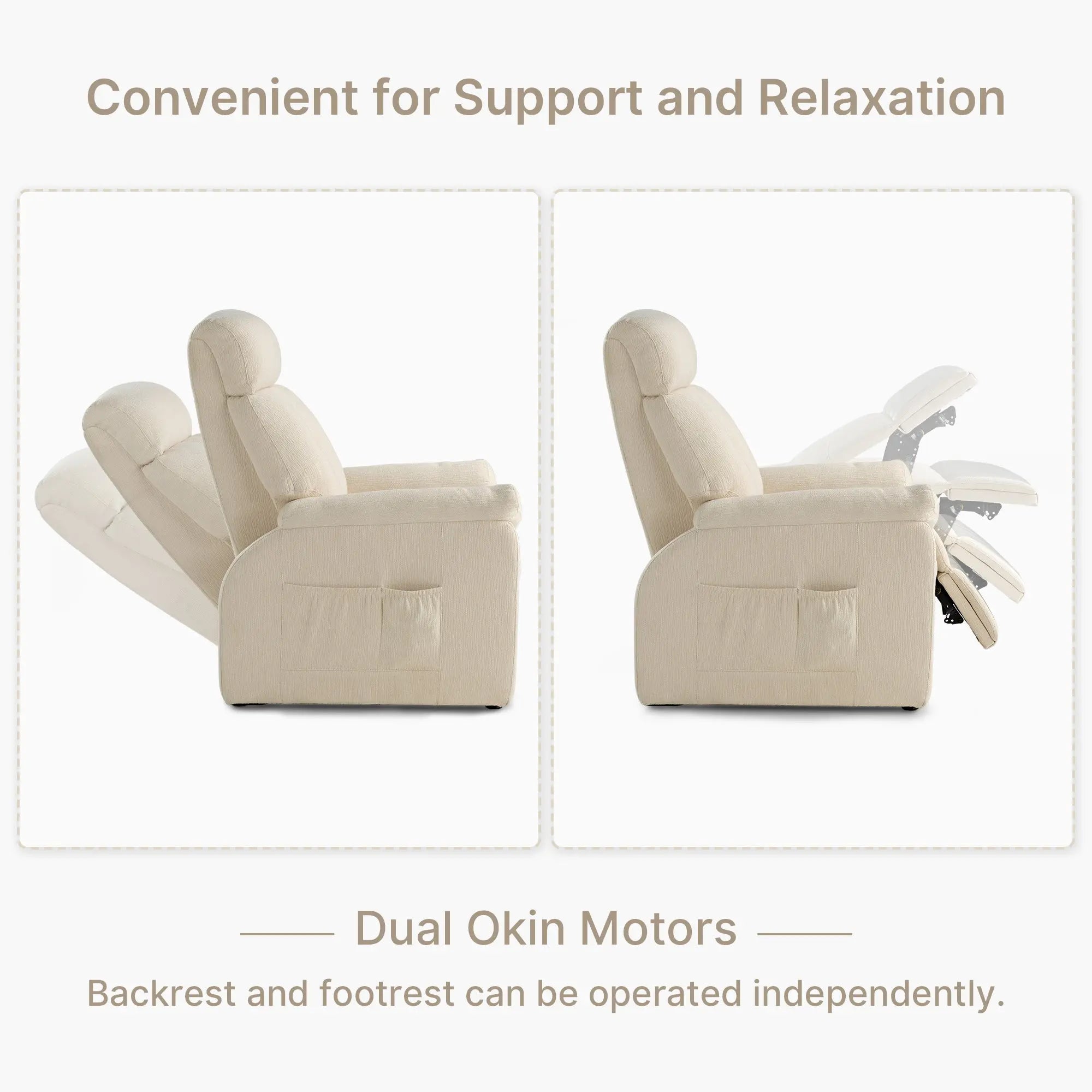 Experience authentic weightless relaxation with our Zero Gravity Recliner, engineered using Leggett’s acclaimed super zero-gravity iron frame and Germany’s Okin high-torque motor. This medical-grade recliner features independent motorized adjustments – precisely control the backrest and leg rest through an intuitive touchpad, whether you’re reading, streaming shows, or enjoying deep naps. The cloud-like comfort comes from a dual-layer cushion system combining high-resilience latex and therapeutic memory foam, wrapped in breathable cotton-linen fabric that stays cool during extended use.Designed for durability, it safely supports up to 300 lbs while maintaining smooth operation through 50,000+ test cycles. Two hidden armrest storage compartments keep remotes and tablets accessible, complemented by easy-clean surfaces that resist stains and pilling. The NASA-inspired zero-gravity positioning optimally distributes body weight. From the reinforced steel base to the whisper-quiet motor system, every detail prioritizes your safety and long-term comfort.