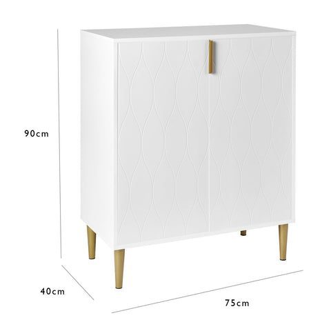 Gloria 2 Door Small Sideboard – White & Brass Legs