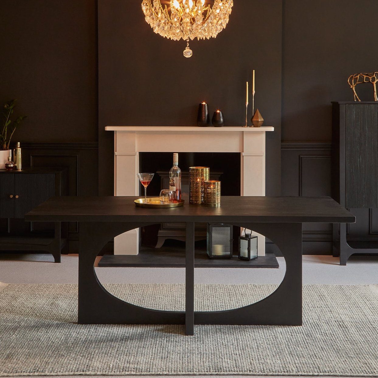 The Jade solid acacia wood table in jet-black will create a statement look in your home and the unique cut-out design element creates a focal point. The elegant and comfortable Nadine taupe dining chairs with black legs complement the Jade table beautifully and create a chic Japandi-inspired aesthetic.