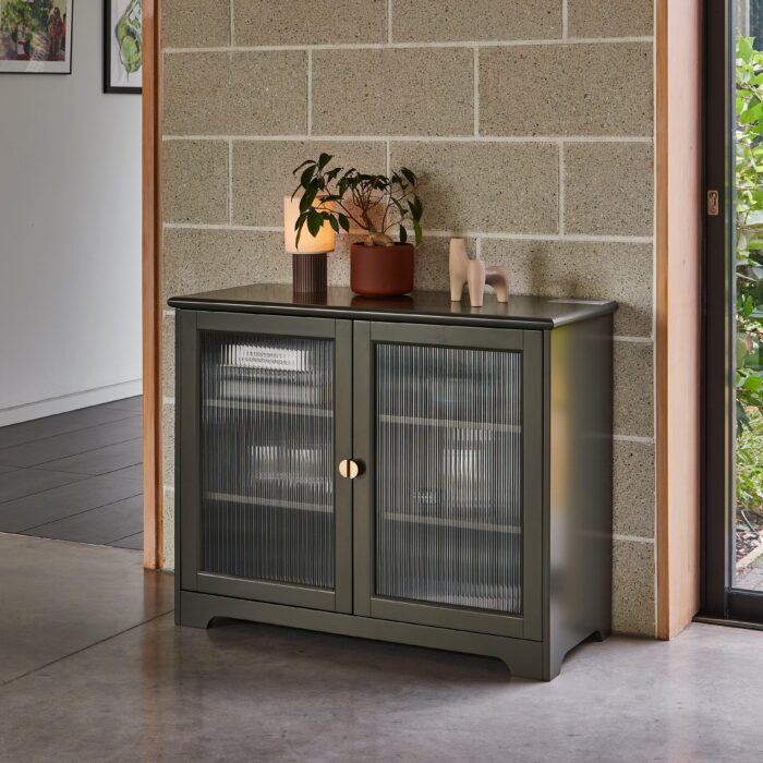 Lua 2 Door Small Sideboard – Fir Green with Glass Door