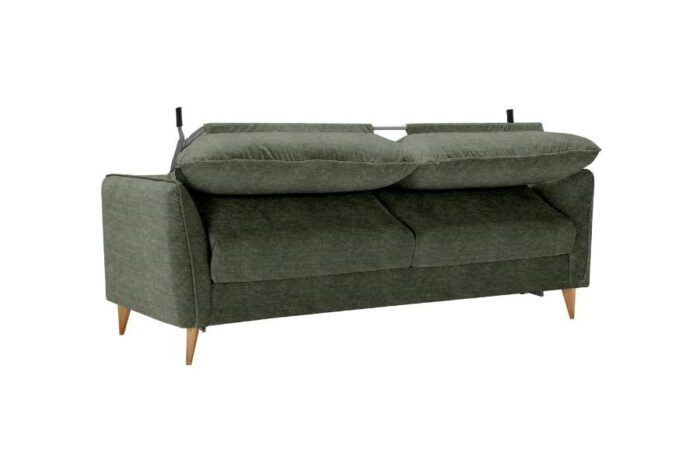 Stylish and practical, this sofa bed offers plenty of room for up to three people to sit back, relax and enjoy time together. The sofa bed’s gently curved armrests, foam and feather-filled cushions and a streamlined design pair beautifully with Atropa upholstery, a warm and durable chenille fabric that provides the sofa with a soft, thick and irresistible finish. The sofa bed effortlessly folds out using a mechanism that opens up to reveal the luxury European double Bonnell spring mattress.