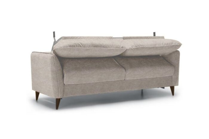 Stylish and practical, this sofa bed offers plenty of room for up to three people to sit back, relax and enjoy time together. The sofa bed’s gently curved armrests, foam and feather-filled cushions and a streamlined design pair beautifully a soft, thick and irresistible fabric finish. The sofa bed effortlessly folds out using a mechanism that opens up to reveal the luxury European double Bonnell spring mattress.