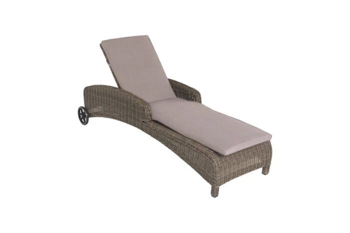 Offering brilliant style and value without compromising on design, this elegant piece has been crafted using mild Olive Brown synthetic rattan to guarantee over 2,000 hours of sun resistance. Complementary cosy Grey or Beige seat and back cushions ensure comfort and support as you soak up the sun. With an adjustable backrest, robust wheels and very little maintenance required, this practical and stylish sun lounger is a wonderful choice for any garden.