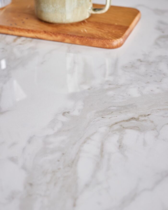 Unlike marble, the non-porous ceramic surface is resistant to spills, making it perfect for busy family life.