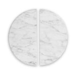 - Luxurious real marble tops elevate the ingenious nesting design
