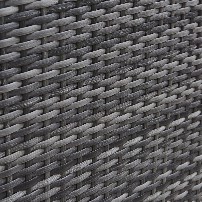 Ideal for outdoor dining or to relax with a drink. The strong durability of the frame and the polyethylene grey wicker makes this set low maintenance and weather-resistant for use all year round.