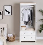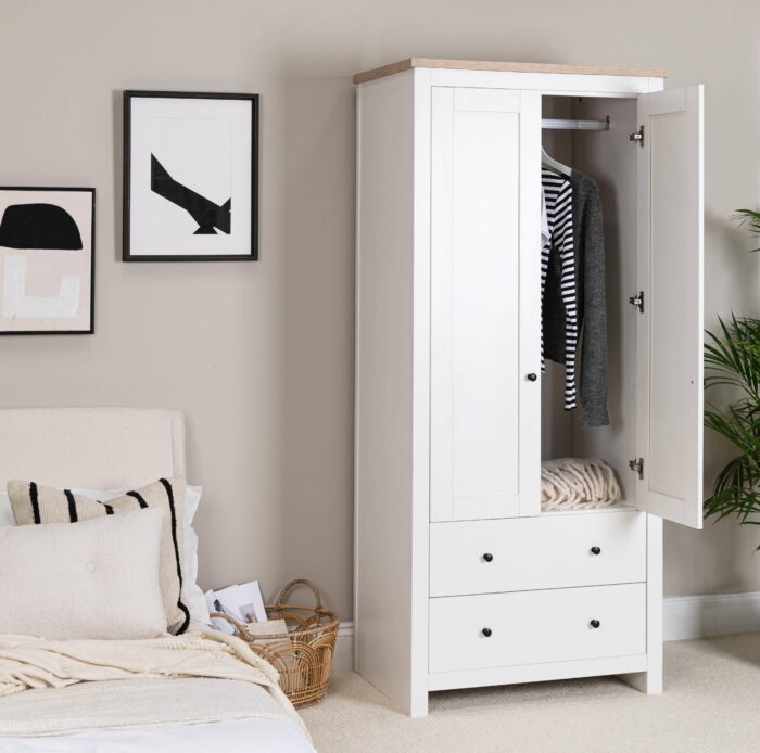 - The practicality of double doors and hanging rail, as well as 2 drawers, allows storage for all your clothing whether hanging or folded.