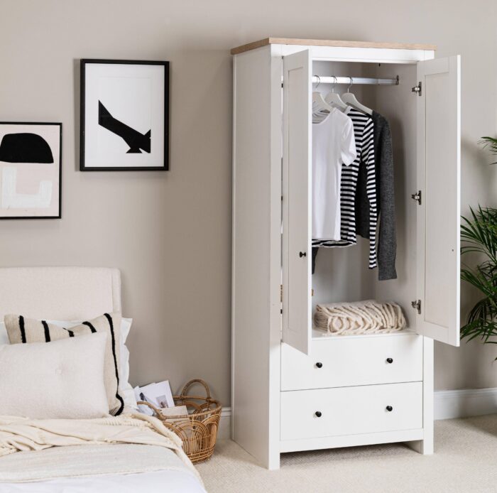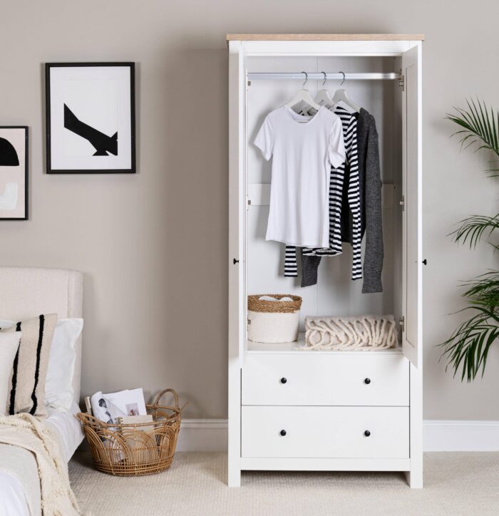 With two drawers at the bottom of the wardrobe, this two-in-one storage option gives greater versatility for keeping various items organised and in one place. These drawers are excellent for delicate garments that you don’t want hanging as they may stretch, or are a great place to keep our socks!