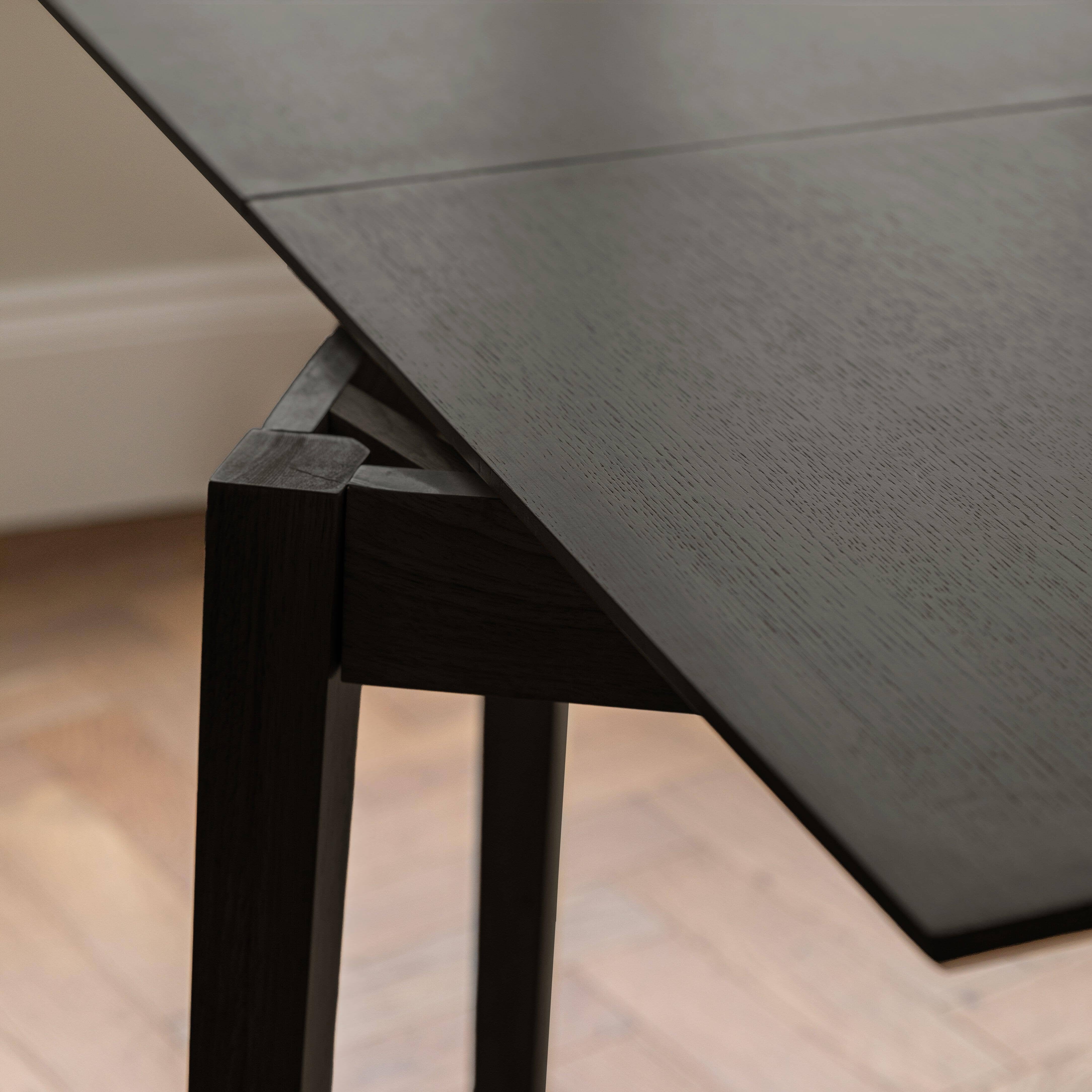 Elevate your dining space with the Charlie extending dining table finished in stunning black oak veneer for a chic and contemporary look. This rectangular table seats 4 people without the extension and seats 6 people when fully extended. This versatile design is compact when not extended and can quickly be transformed with its easy swivel extension function when to want to accommodate more guests.