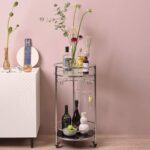 Bring some elegance to your home with the Evelyn drinks trolley. Perfect for containing all your favourite barware and beautiful bottles, you’ll be transported back to an era of inhibition. This round drinks trolley allows you hanging space for 6 glasses, as well as two glass trays that’ll easily fit a selection of drinks bottles.