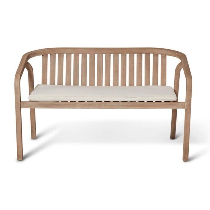 - Design features – Garden bench made from brushed light wood with curved edges for a modern/contemporary design.