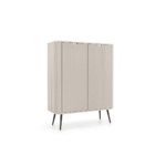 The Zova Highboard Cabinet 103cm is a tall and functional piece that provides ample storage with a minimal footprint. This cabinet includes two hinged doors opening to four shelves, catering to a variety of storage needs. Made with high-quality laminated board, ABS edging, and milled MDF fronts, it combines durability with style. Supported by black metal legs for a contemporary aesthetic, it is a robust option that offers matching furniture options to complete your space.