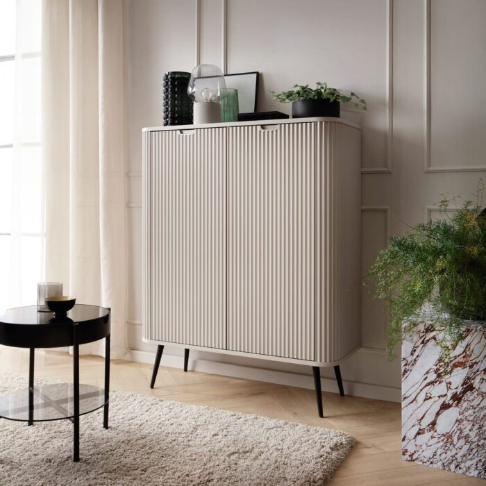 The Zova [Living Room] brings a fresh, stylish vibe to your home with its softly grooved MDF fronts and a sophisticated palette of cashmere, black, and white finishes. The collection’s smooth surfaces and textured details create a comfortable, welcoming atmosphere without compromising on style.