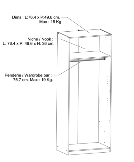 Chicago Oak Effect 2 Door 80cm Narrow Compact Wardrobe